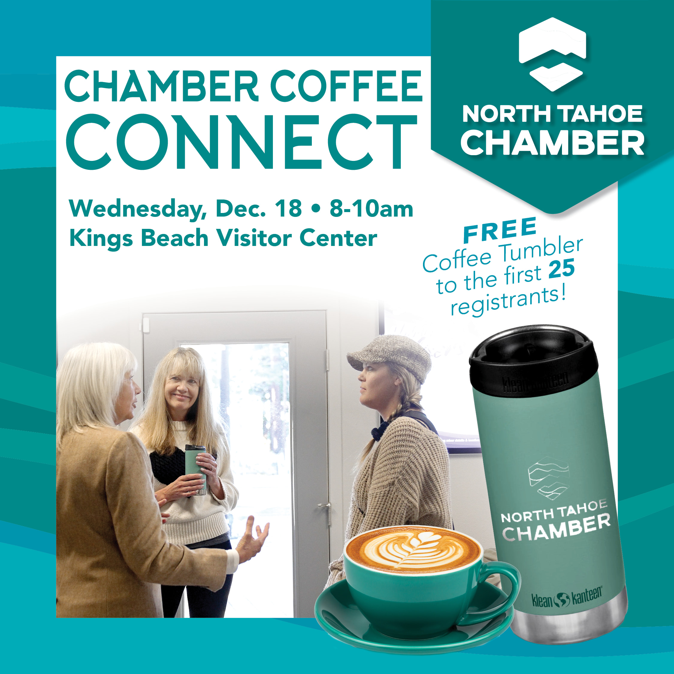 Join us for the North Tahoe Chamber Coffee Connect on Wednesday, December 18 from 8-10am at the North Tahoe Chamber Office right next to the Visitor Center in Kings Beach! This is your chance to explore our new Chamber office, meet our fantastic staff, and connect with fellow community members — all while enjoying delicious coffee and morning bites from the Remedy Eatery. As a special bonus, the first 25 people to register will receive a FREE Klean Kanteen coffee tumbler! We’re also offering complimentary professional headshots—a perfect chance to update your professional profile! We can’t wait to see you there!
